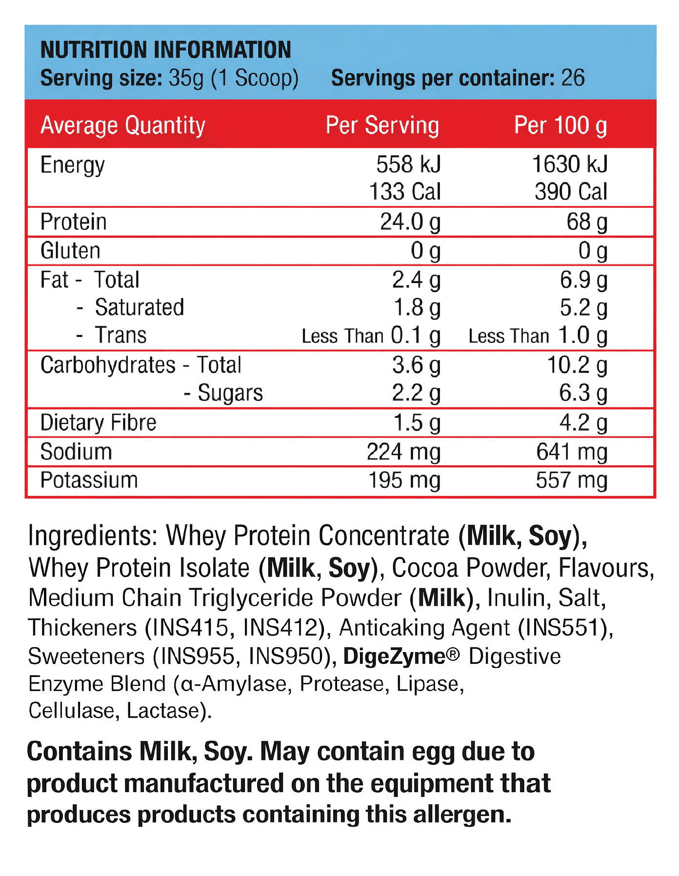 โปรตีนคุณภาพสูง สูตรผสมพิเศษของ Whey Protein Concentrate และ Whey Protein Isolate ที่ให้คุณค่าทางโภชนาการระดับพรีเมียม